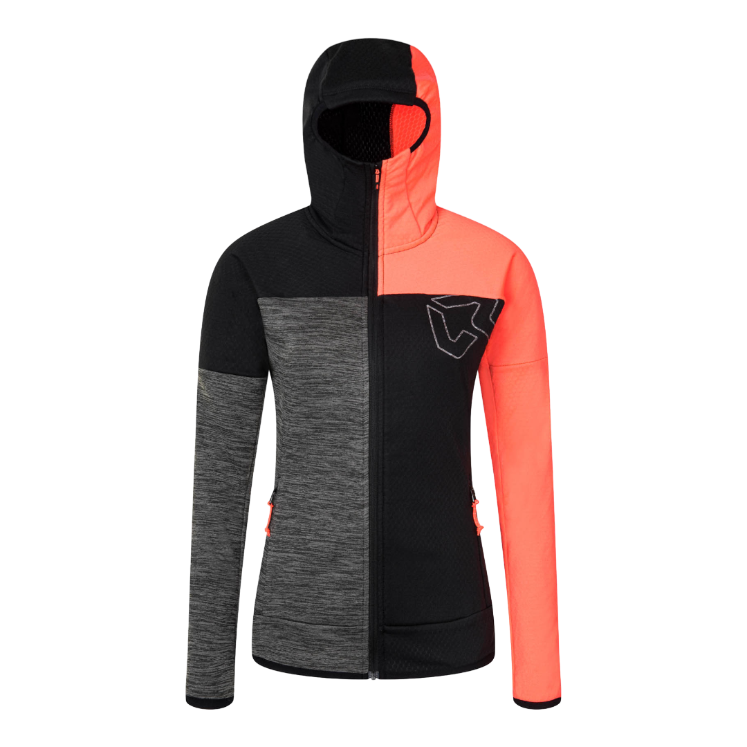 Kobra è il capo ideale per quando si ha bisogno di un secondo strato per l’escursionismo e il trekking in grado di fornire un adeguato apporto termico e una buona traspirabilità. La particolare costruzione interna del tessuto a forma esagonale intrappola infatti calore all’interno e lascia fuoriuscire l’umidità che si crea durante gli sforzi più intensi. Kobra presenta un tessuto altamente elastico, traspirante e ad asciugatura rapida per il massimo comfort. Cappuccio e polsini con bordino elastico aderiscono perfettamente al corpo donando al capo un’ottima vestibilità e garantendo massima libertà di movimento. Dal look sportivo tricolor, sgargiante ma sobrio, non fa passare inosservati lungo i sentieri e fornisce tutti i vantaggi necessari per affrontare un trekking al meglio.