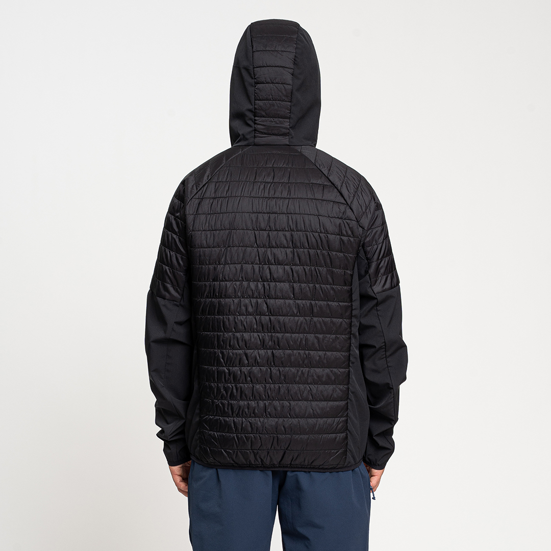 - Giacca ibrida realizzata con leggera trapuntatura imbottita e inserto in twill di nylon elasticizzato su petto, mezze maniche e pannelli laterali