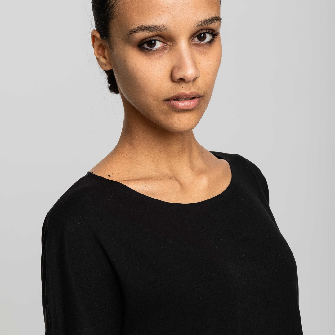 - Colletto, orlo inferiore e maniche lavorati con taglio laser per una finitura pulita e precisa.