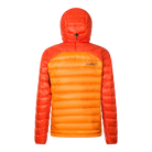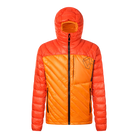 Il riempimento principale è costituito da piumino 90/10 con fill power 750 FP, che offre un'eccellente isolamento termico con peso ridotto. Il cappuccio è imbottito con poliestere riciclato ad alto loft da 120 gsm, per ulteriore calore e protezione.